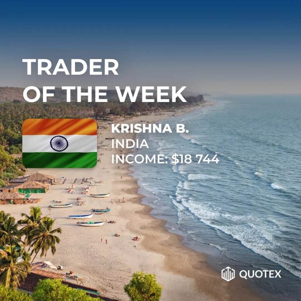 Krishna B. from India became Trader of the week on Quotex platform, he earned $18 744!